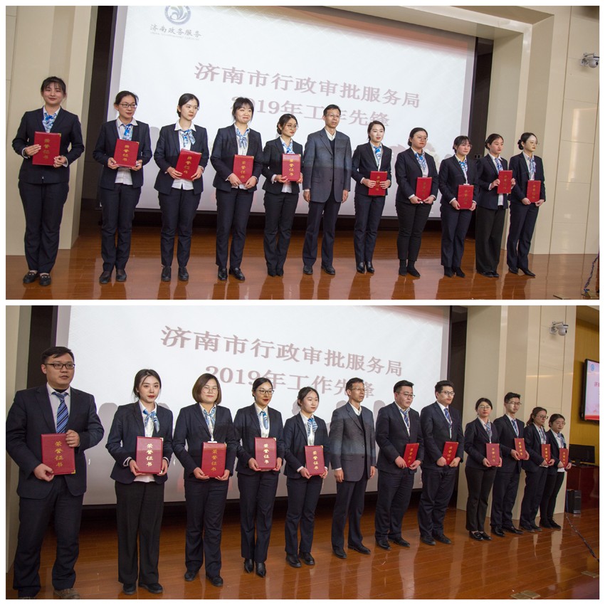 會(huì)議首先由陳秀中副局長(zhǎng)宣布獲得工作先鋒的20名工作人員名單,并希望獲獎(jiǎng)人員在2020年繼續(xù)成為濟(jì)南市政務(wù)服務(wù)中心一窗受理工作人員的模范和榜樣。由孫常建書記為受到表彰的先進(jìn)個(gè)人頒發(fā)了獎(jiǎng)狀和證書。