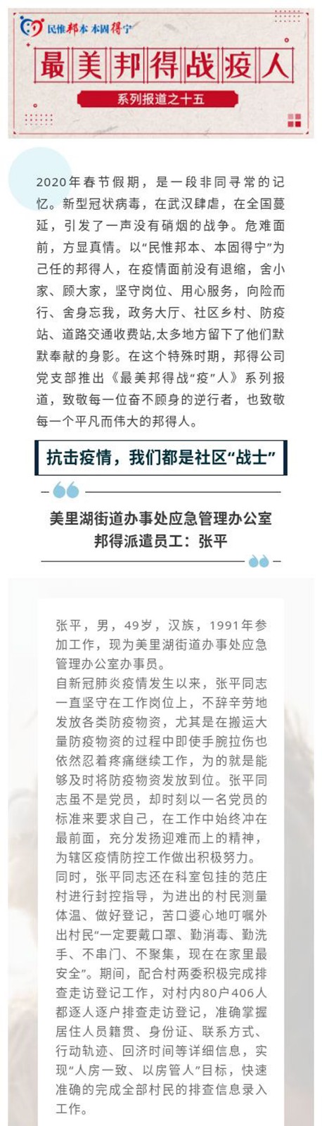 最美邦得戰(zhàn)“疫”人 — 系列報道之(十五)
